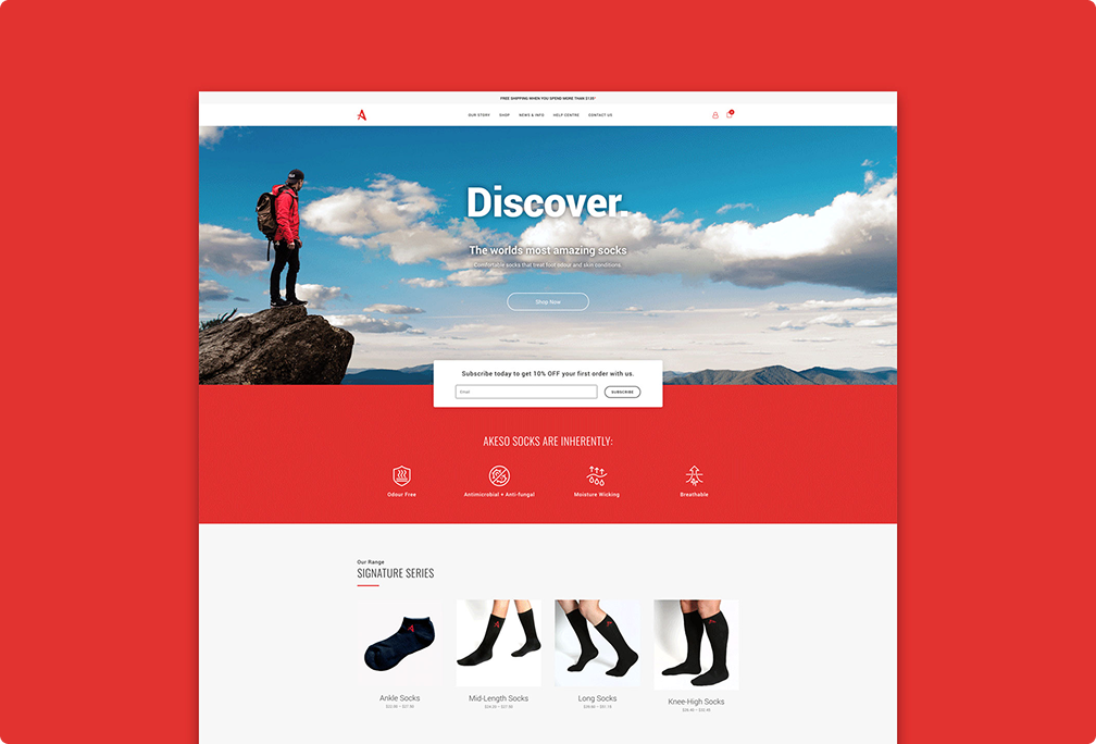 Akeso Socks produces performance socks using their proprietary Metis PCA™ fibre, with genuine antimicrobial and durability properties that set them apart in a crowded market. Checkpoint Creative’s brief was to build a brand and digital presence that communicated this technical advantage clearly and drove consumer trust from the ground up.